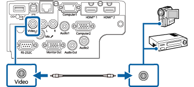 Se o equipamento de vídeo estiver equipado com uma porta de vídeo composto, pode ligá-lo ao projetor utilizando um cabo de vídeo RCA ou A/V.