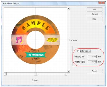 If your printed design is not positioned on your disc correctly, you can adjust the print position using an extra CD/DVD.