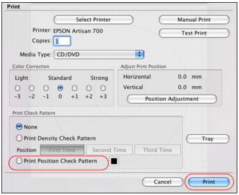 5. Click Print. Follow the instructions on the LCD display screen to load the check disc or a test disc, then press the CD Tray button.