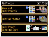 You can print the same photo or multiple photos on a single sheet of paper using the Artisan 800 Series templates. The available layouts depend on the size of the paper you are using.
