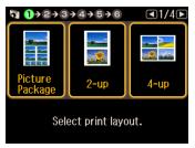 • Picture Package prints a photo in multiple sizes on a letter-size sheet.