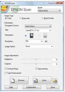 Start Epson Scan Before you start Epson Scan, place your original on the scanner glass or in the Auto Document Feeder. Windows: Double-click the EPSON Scan icon on your Windows desktop. Macintosh: Open the Applications folder and double-click the EPSON Scan icon. Note:You can also start scanning from the control panel or another scanning program. Now you can select a scan mode.