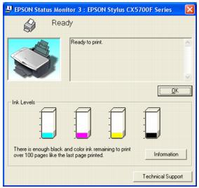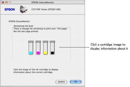 You can also check the ink levels using the display and buttons on the EPSON STYLUS CX5700F. See the Basics Guide for instructions.