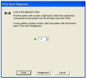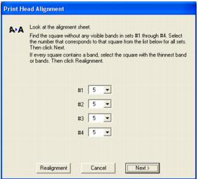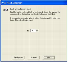 If you cannot find an aligned pattern, choose the one that looks the best. Then click Realignment to print another alignment sheet and repeat this step.