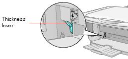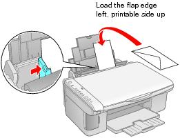 Envelopes 1. Open the paper support and slide out the extensions. 2. Open the output tray and pull out the extension. 3. Set the paper thickness lever to the H position. 4. Load up to 10 envelopes at a time, flap edge left, printable side up, against the right edge guide. Note: For best results, press each envelope flat before loading, or load one envelope at a time. 5. Slide the left edge guide against the envelopes (but not too tightly). 6. Flip the feeder guard back. Select the following settings when printing on envelopes: • Envelope as the paper Type or Media Type setting • The correct envelope size as the Size or Paper Size setting • Landscape as the Orientation setting For instructions on selecting these settings, see: • Printing in Windows • Printing with Macintosh OS X
