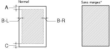 Lorsque vous imprimez avec la fonction sans marges, il se peut que la qualité d'impression se dégrade dans la zone agrandie. Avant d'effectuer des travaux d'impression importants en utilisant le paramètre d'impression sans marges, imprimez une feuille individuelle pour vérifier la qualité d'impression.