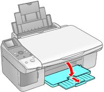 - Abaissez le plateau de sortie et tirez sa rallonge.