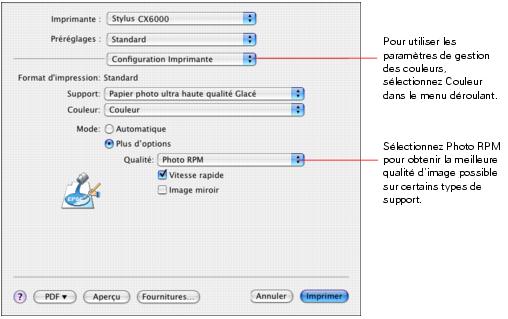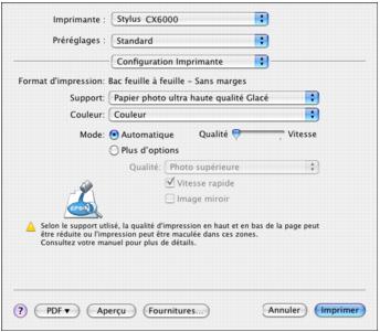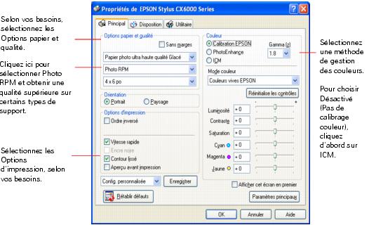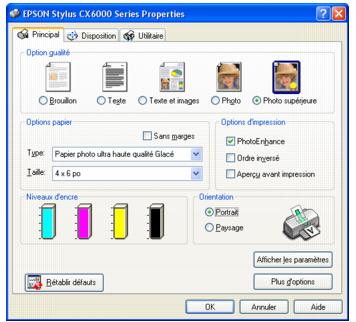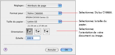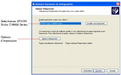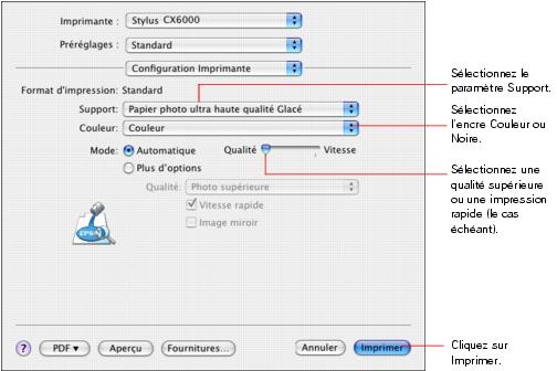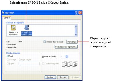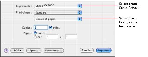 - Sélectionnez Stylus CX6000 dans le menu déroulant Imprimante.