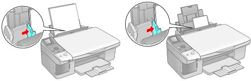 - Glissez le guide-papier gauche contre le papier, sans trop serrer.