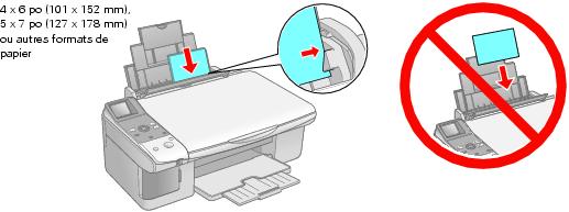 4 × 6 po (101 × 152 mm) 5 × 7 po (127 × 178 mm) Lettre (216 × 279 mm); 8,5 × 11 po)
