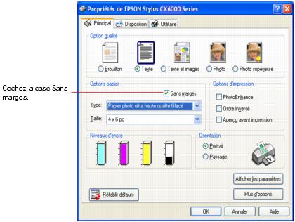 Pour des détails concernant l'impression de photos sans marges, voyez Impression de photos sans marges.