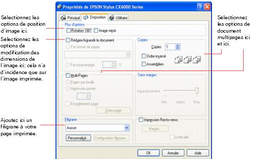 Pour de plus amples renseignements sur les paramètres de disposition, cliquez sur le bouton ? ou Aide.