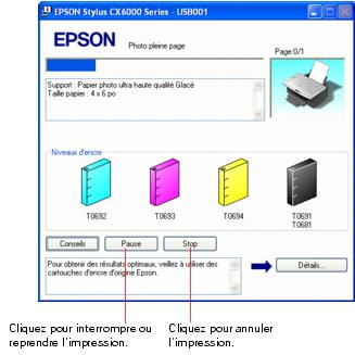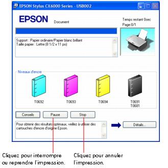 Centre d'impression, puis double cliquez sur Stylus CX6000 dans la Liste des imprimantes.
