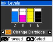 3. Press Back as necessary to return to the main screen.You can also check the ink levels using your Windows or Macintosh software. If one of the screens shown indicate that a cartridge is expended, replace the cartridge.