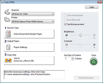 You can use your scanner along with a printer connected to your computer just like you would use a copy machine. You can even enlarge and reduce, enhance text, and adjust image brightness as you copy.