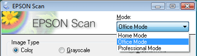 Changing the Scan ModeTo change the scan mode, click the arrow in the Mode box in the upper right corner of the Epson Scan window. Then select the mode you want to use from the list that appears.