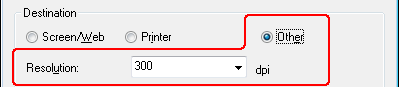 To change the resolution, first select Other as the Destination setting.
