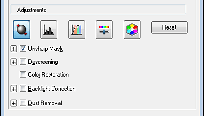 Once you have previewed your image(s) and adjusted the scan area, you can modify the image quality, if necessary. Epson Scan offers a variety of settings for improving color, sharpness, contrast, and other aspects affecting image quality. Before you make adjustments, be sure to click the image or marquee for the area you want to adjust.