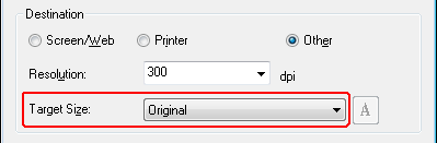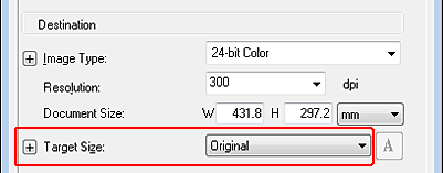 You can scan your images at their original size, or you can reduce or enlarge their size as you scan them. You do this using the Target Size setting.