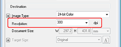 For example, if the resolution is 300 dpi, but you will increase the image size to 200%, change the resolution setting to 600 dpi.