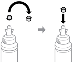 Install the bottle cap tightly; otherwise, ink