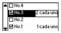 Si seleccionó una foto erróneamente, puede cancelar la elección. Seleccione el número de la foto y oprima el botón OK para cancelarla. Si necesita modificar el número de copias, oprima el botón OK dos veces y modifique el número, como se describe en el paso 3.