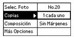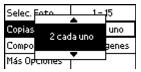 Nota: Si va a imprimir varias fotos utilizando la opción Varias, usted ya seleccionó el número de copias que desea de cada foto, por lo no podrá modificar esta información desde el Menú principal. Puede seleccionar hasta 10 copias por foto al imprimir con la opción Varias.