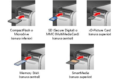 Puede utilizar cualquiera de estos tipos de tarjetas de memoria con esta impresora: