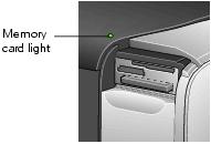 - Push the card in until it stops (it won't go in all the way). When the card is in, the memory card light comes on.
