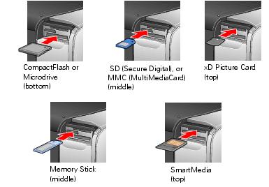 Note: Insert just one card at a time. PictureMate can't read multiple cards at once.