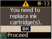 You cannot copy, scan, or print when an ink cartridge is expended even if the other cartridges are not expended. Replace any expended cartridges before copying, scanning, or printing.