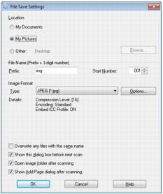 1. Select the folder in which you want to save your scanned image, either My Documents or My Pictures (some Windows versions), or Documents or Pictures (some Windows versions and Macintosh).If you want to select another folder, click Other, then click Browse (Windows) or Choose (Macintosh) and select the folder. To save your image on the desktop, simply click Other.