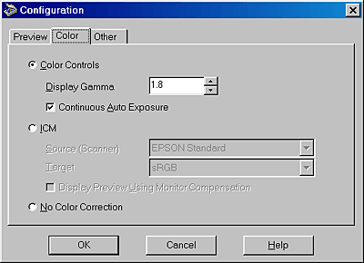 Choose a color profile for your scanner from this list box. EPSON recommends selecting EPSON Standard.
