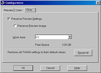 When this setting is selected, the image shown in the Preview window is saved together with its associated settings so that it remains effective the next time you start EPSON TWAIN. This is useful when you are scanning the same document more than once, especially when you use different applications to scan the same document.