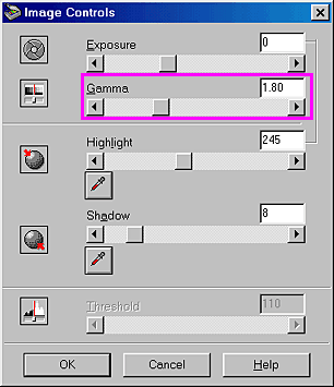 Move the Gamma slider left or right, or enter a value between 0.5 and 5.0 in the text box.