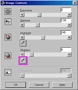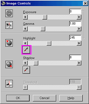 In the Image Controls dialog box, click the eyedropper button under Highlight.