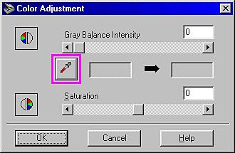 In the Color Adjustment dialog box, click the eyedropper button under Gray Balance Intensity.