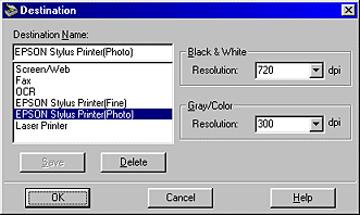 If you are using an EPSON Stylus printer and are printing scanned images with the Economy, Normal, or Fine Print Quality settings in your printer software, selecting EPSON Stylus Printer (Fine) is recommended. If you are printing with the SuperFine or Photo Print Quality settings, select EPSON Stylus Printer (Photo).