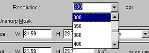 The resolution for the current scanning operation can be changed by selecting a resolution or typing in the value. This setting overrides the resolution setting you make in the Destination dialog box.