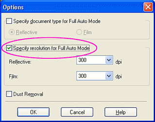 If EPSON Scan cannot recognize the correct document source, you can specify the document type in the Options dialog box. For details, see the online help.