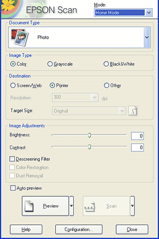 Follow the steps below to scan images for viewing on computer screen in the Home Mode.