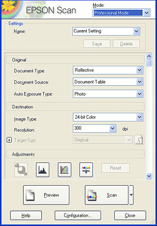 Follow the steps below to scan materials for viewing on computer screen in the Professional Mode.
