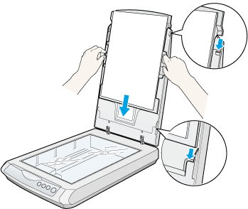 When you use the Perfection 1670 Photo or the optional document cover for the Perfection 1670, the reflective document mat must be attached to scan reflective documents (like photo or paper). Follow the steps below.