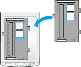 Place slides in the 35 mm slides holder, as shown below.