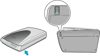 Before turning on the scanner, make sure the transportation lock is in the unlocked position and the scanner is connected to your computer.