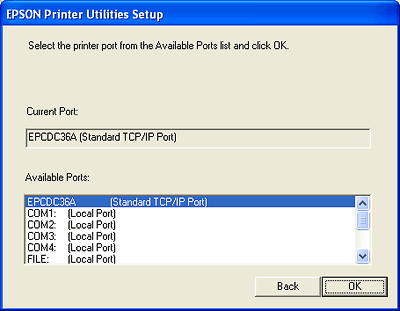 For Mac OS X 10.4.x, if your printer is not displayed with TCP/IP, click More Printers, select EPSON TCP/IP from the drop-down list, and then select the printer model.