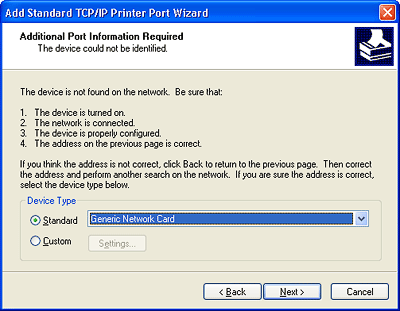 Make sure that the Standard and Generic Network Card are selected, and then click Next.