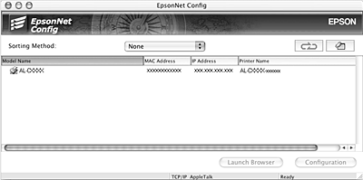 EpsonNet Config for Macintosh is a Macintosh-based configuration software for administrators that allows you to configure the network interface for TCP/IP, AppleTalk, and IPP.