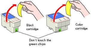 The black cartridge is on the left, and the color cartridge is on the right.