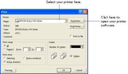 Tip: For more information about printer settings, click the Help button, or right-click any item on the screen and then click What's This?.